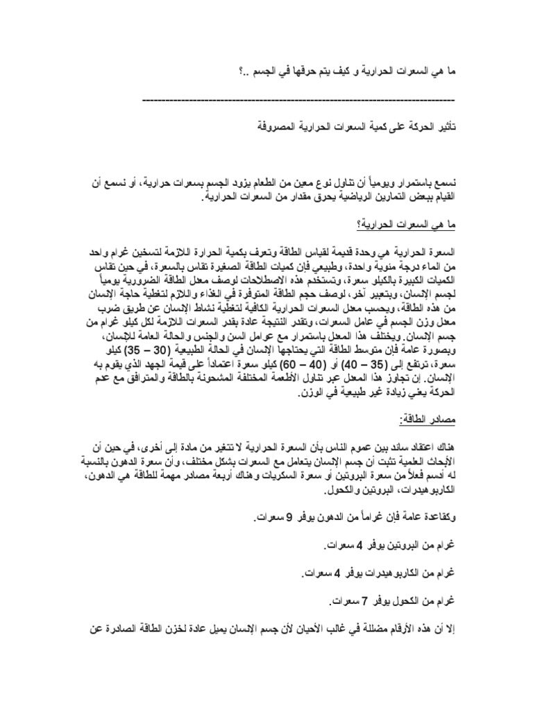 بحث عن السعرات الحرارية Doc