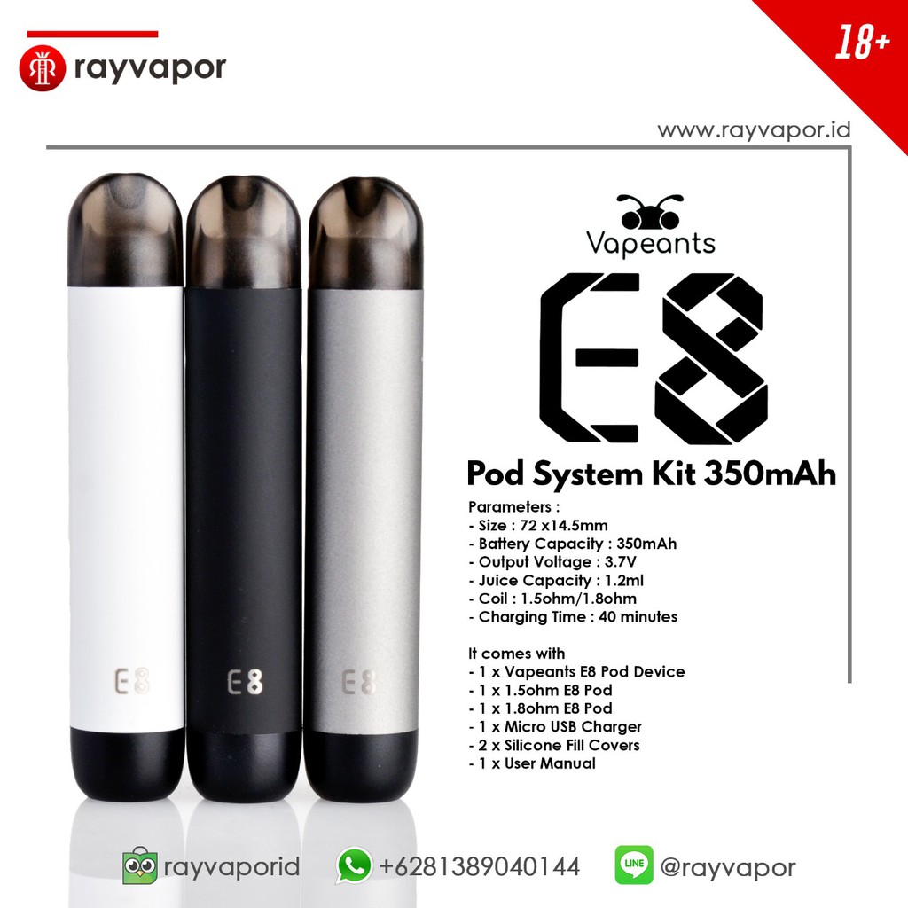 Pod Starter Kit E8 Pod System Kit 350mah By Vapeants Authentic Shopee Indonesia