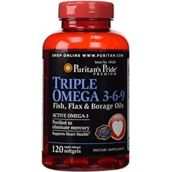 Amazon Com Puritans Pride Triple Omega 3 6 9 Fish Flax Borage Oils 120 Count Health Personal Care
